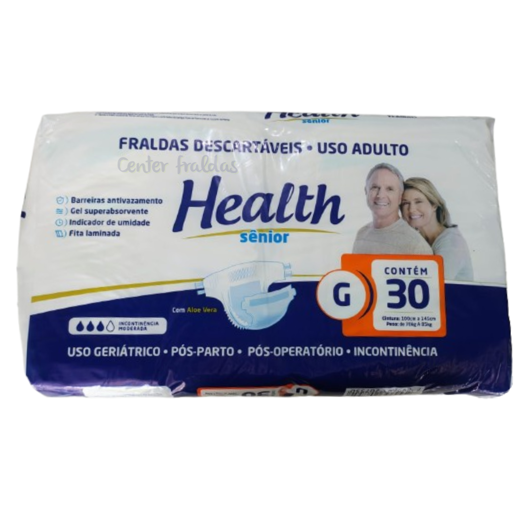 - G com 30 Fraldas - de 70Kg a 85Kg e cintura de 100cm a 145 cm.